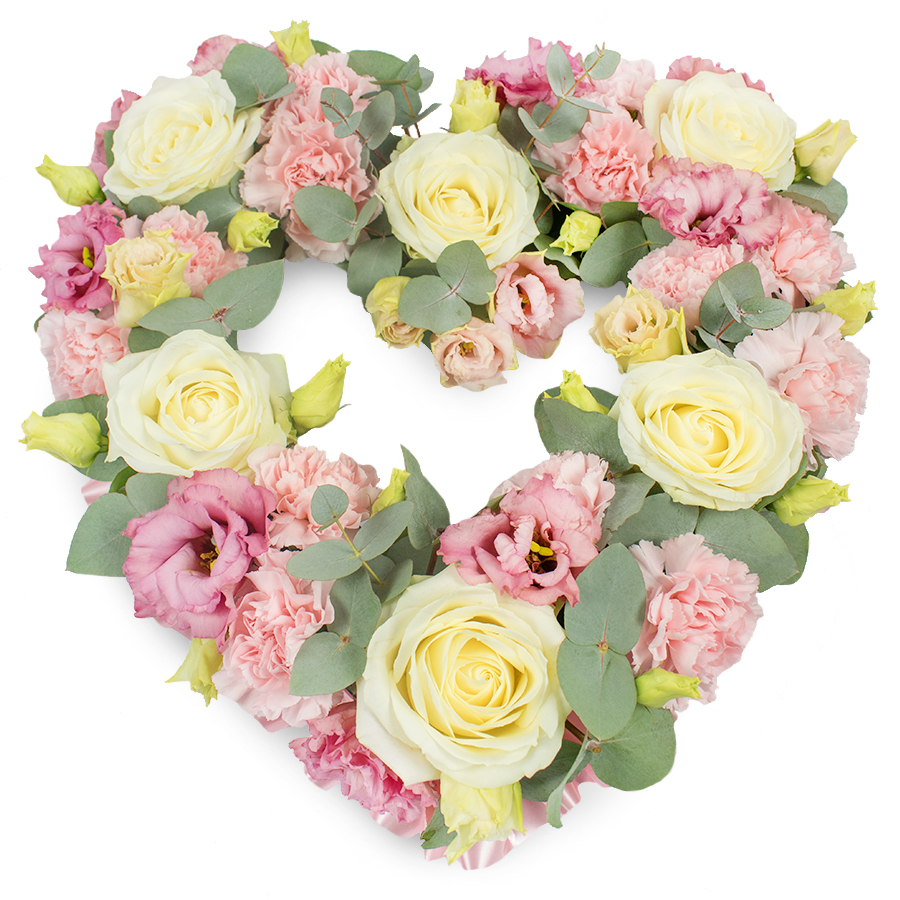 Our Sophisticated Memorial Bouquet is a perfect expression of love and remembrance. This stunning arrangement features elegant white roses, pink carnations, soft pink lisianthus, and fragrant eucalyptus leaves, artfully combined to create a unique and beautiful display.